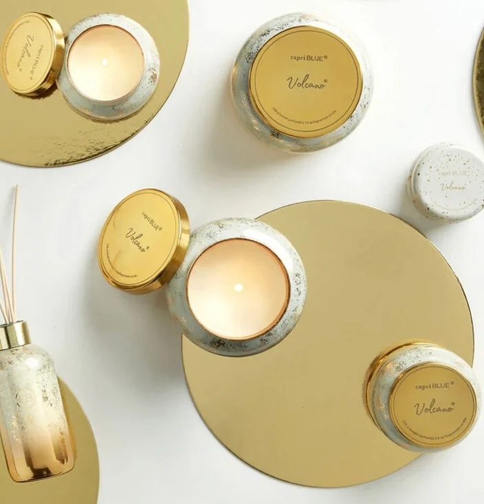This VolcanoGlimmer Petite Jar will give you winter wonderland feels with it's gorgeous winter white and gold finish. And it will warm up any room with our iconic tropical fruits and sugared citrus notes!