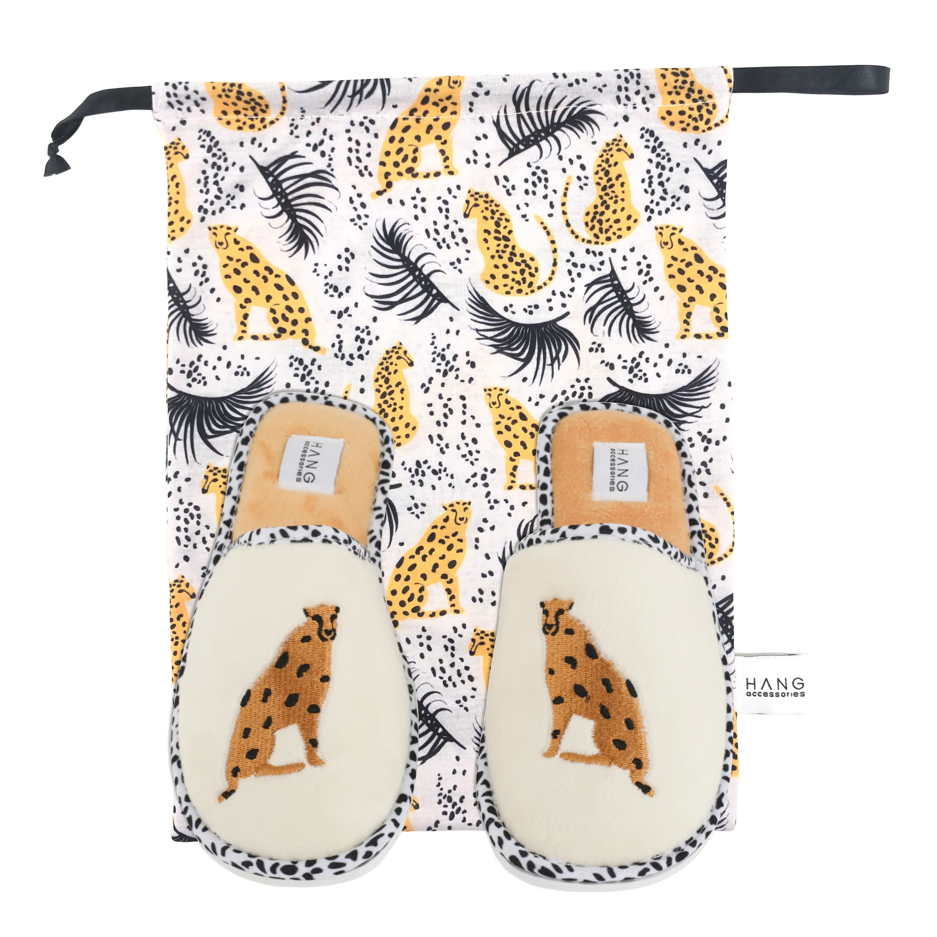 - Includes a perfectly packable coordinating drawstring pouch to tuck away slippers with ease